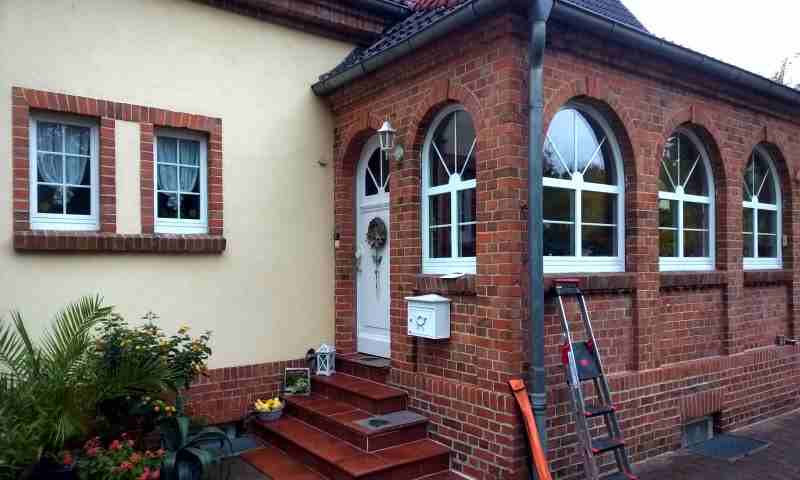 Dieses ehemalige Wohnhaus eines Ziegelfabrikanten (im Bild der Hauseingangsbereich) haben unsere Kunden in den letzten Jahrzehnten Stück für Stück saniert und modernisiert.
