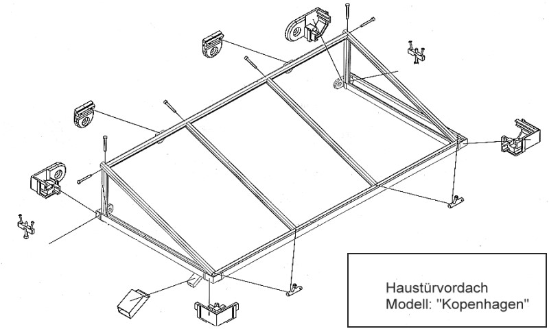 Aus unserem Haustürvordachprogramm haben sich die Kunden für das Modell "Kopenhagen" entschieden. Durch die Pultdachkonstruktion wirkt das Vordach nicht aufdringlich. Strangepresste, 8-eckige Aluminiumprofile und Eckverbinder aus Aluminium-Druckguss sowie stabile Aufhängepunkte gewährleisten die nötige Stabilität.