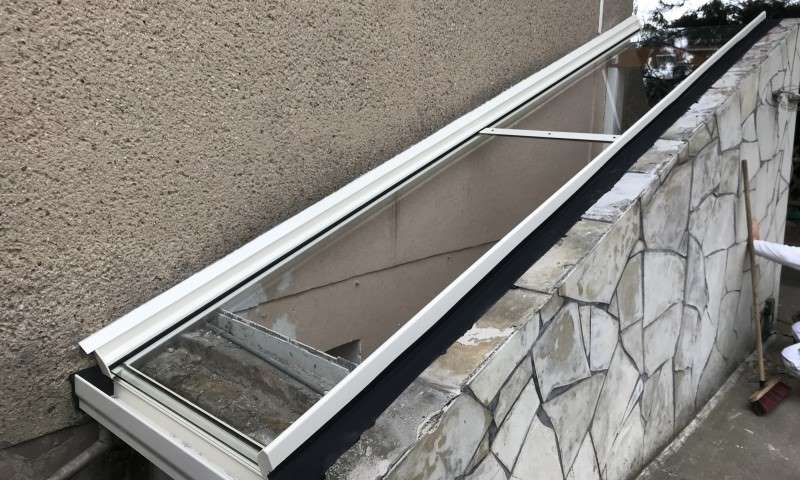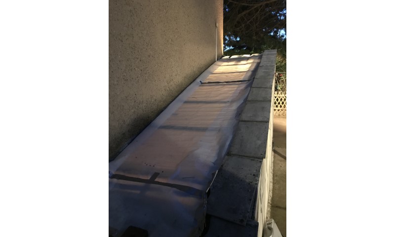 (Fast) fertige Überdachung. Im unteren Bereich wird noch eine Abdeckung montiert und die Mauer erhält noch ein gekantetes Blech zum Schutz vor Nässe.