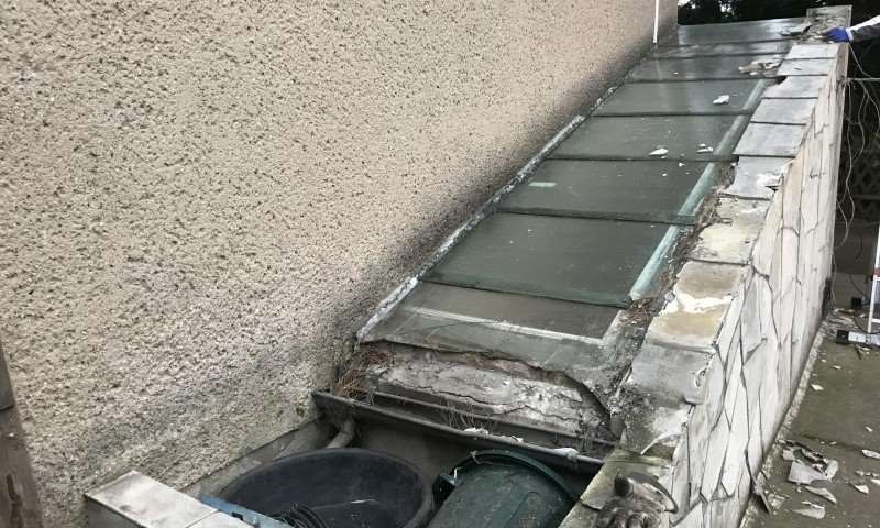Ein vom Dach gefallener Ziegel beschädigte die Glasplatten.